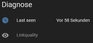 Nun erscheint in der Übersicht von Zigbee2MQTT ein Hinweis, wann das Gerät sich zuletzt gemeldet hat.
