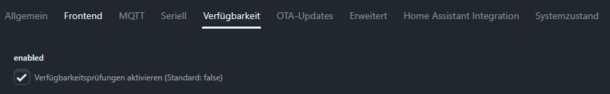 Befinden sich die Verfügbarkeits-Einstellungen. Hier kann die Verfügbarkeits-Prüfung aktiviert werden.